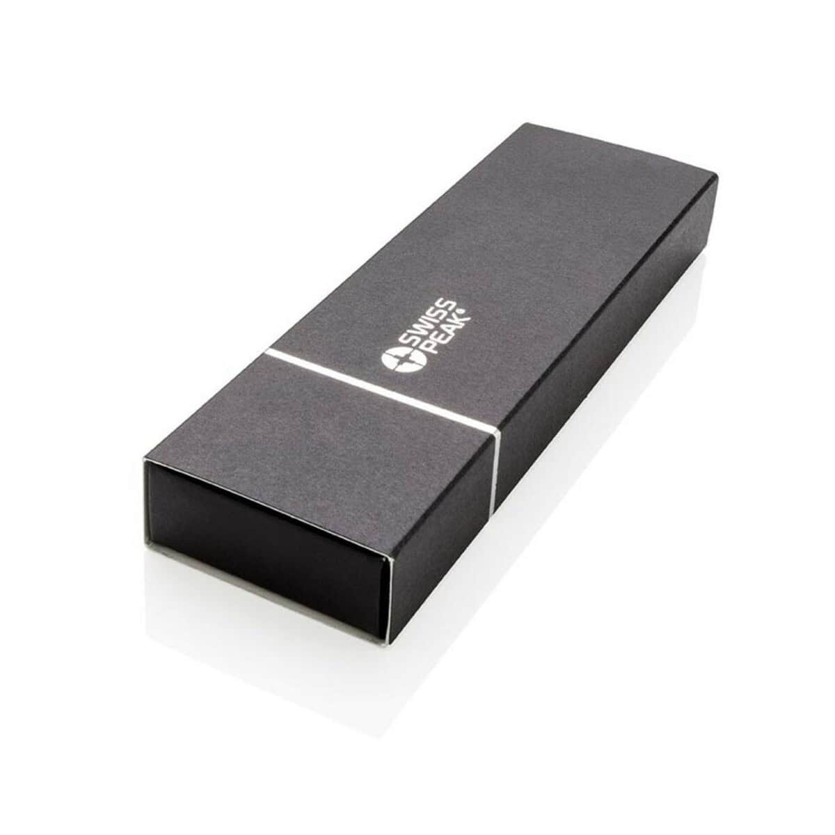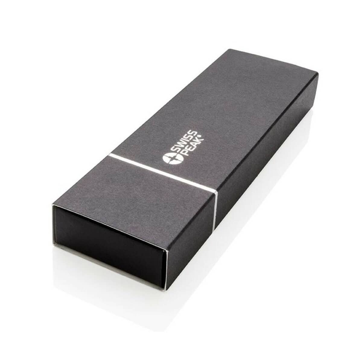 Zestaw piśmienniczy Swiss Peak, długopis i ołówek mechaniczny to prawdziwie reklamowy majstersztyk, który sprawdzi się wszędzie tam, gdzie elegancja spotyka się z funkcjonalnością. Wykonany ze szczotkowanej stali o szlachetnej czerni, zachwyca minimalistycznym designem, a jednocześnie wyróżnia się wytrzymałością. Dzięki kompaktowym wymiarom 13,8 × 1 cm bez trudu zmieści się w kieszeni marynarki, torbie na konferencję czy w skórzanym organizerze menedżera. W zestawie kryje się niemiecki wkład o długości pisania aż 1200 m oraz trzy zapasowe grafity 0,7 mm, co gwarantuje, że zapiszesz każdy pomysł od pierwszej do ostatniej strony notatnika. Długopis i ołówek spoczywają w gustownym, ozdobnym pudełku – to gotowy gadżet dla Twojej firmy, wystarczy dodać logo.