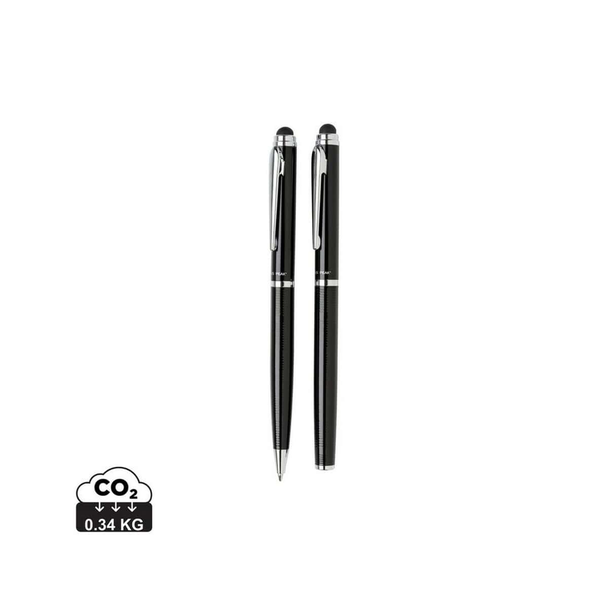 Zestaw piśmienniczy Swiss Peak, długopis i pióro kulkowe to wyrafinowane połączenie elegancji i funkcjonalności, które przyciągnie spojrzenia każdego konesera akcesoriów piśmienniczych ✒️. Zarówno długopis, jak i pióro kulkowe wyposażone są w nowoczesną końcówkę touch pen, dzięki czemu możesz komfortowo obsługiwać ekran smartfona lub tabletu, nie rezygnując z klasycznego charakteru ręcznego pisania. Całość znajduje się w stylowym, firmowym pudełku Swiss Peak, a precyzyjny grawer odkrywający złotą powierzchnię dodaje ponadczasowego uroku.