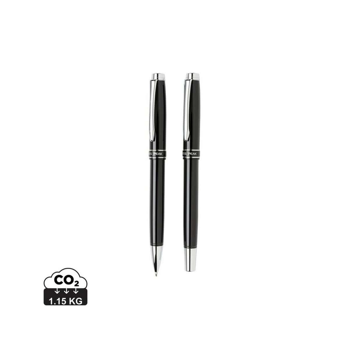 Zestaw piśmienniczy Swiss Peak Heritage to prawdziwie prestiżowy gadżet firmowy, który doda splendoru każdemu biurku. Wykonane z wytrzymałego mosiądzu pióro kulkowe oraz długopis kryją w sobie niemiecki wkład o długości pisania aż 1200 m, co przekłada się na długotrwałą wygodę użytkowania. Elegancka stalowa konstrukcja (waga 166 g, wymiary 6,8 × 3,8 × 17 cm, Ø1 cm) podkreśla jego solidność, a subtelny czarny kolor sprawia, że zestaw od razu kojarzy się z klasą premium. Grawer laserowy odsłania powierzchnię w szlachetnym, złotym odcieniu, dzięki czemu umieszczone logo prezentuje się efektownie i wyróżnia markę spośród konkurencji 🙂.