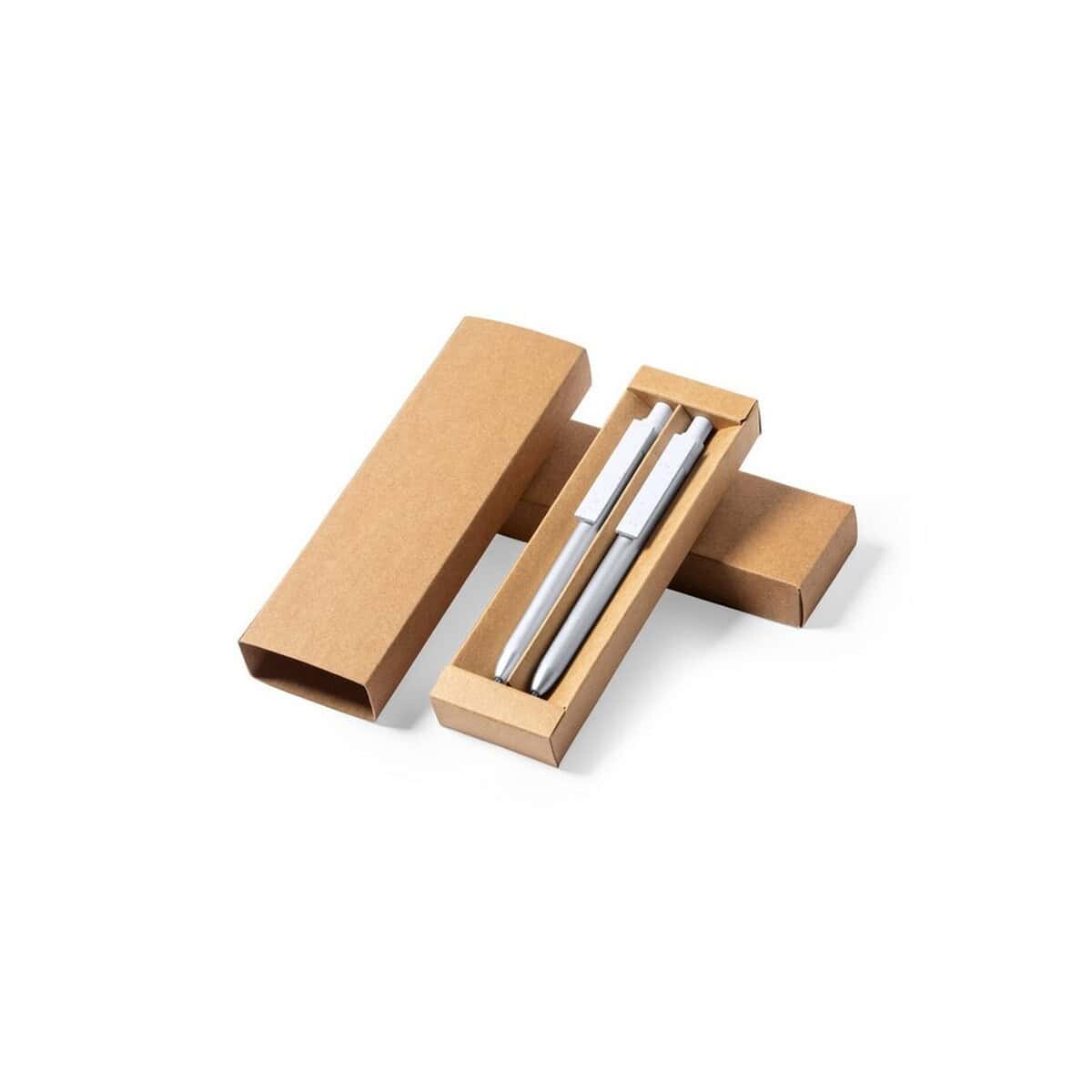 Zestaw piśmienniczy z aluminium z recyklingu, długopis i pióro kulkowe to znakomite połączenie elegancji i troski o środowisko. Wykonany z aluminium z recyklingu, z klipem z przyjaznego naturze RABS i potwierdzeniem jakości certyfikatem GRS, pokazuje, że odpowiedzialność ekologiczna może iść w parze z prestiżem. Całość uzupełnia minimalistyczne etui z kartonu z recyklingu, które podkreśla charakter produktu oraz chroni Twoje nowe narzędzia do pisania 😊.