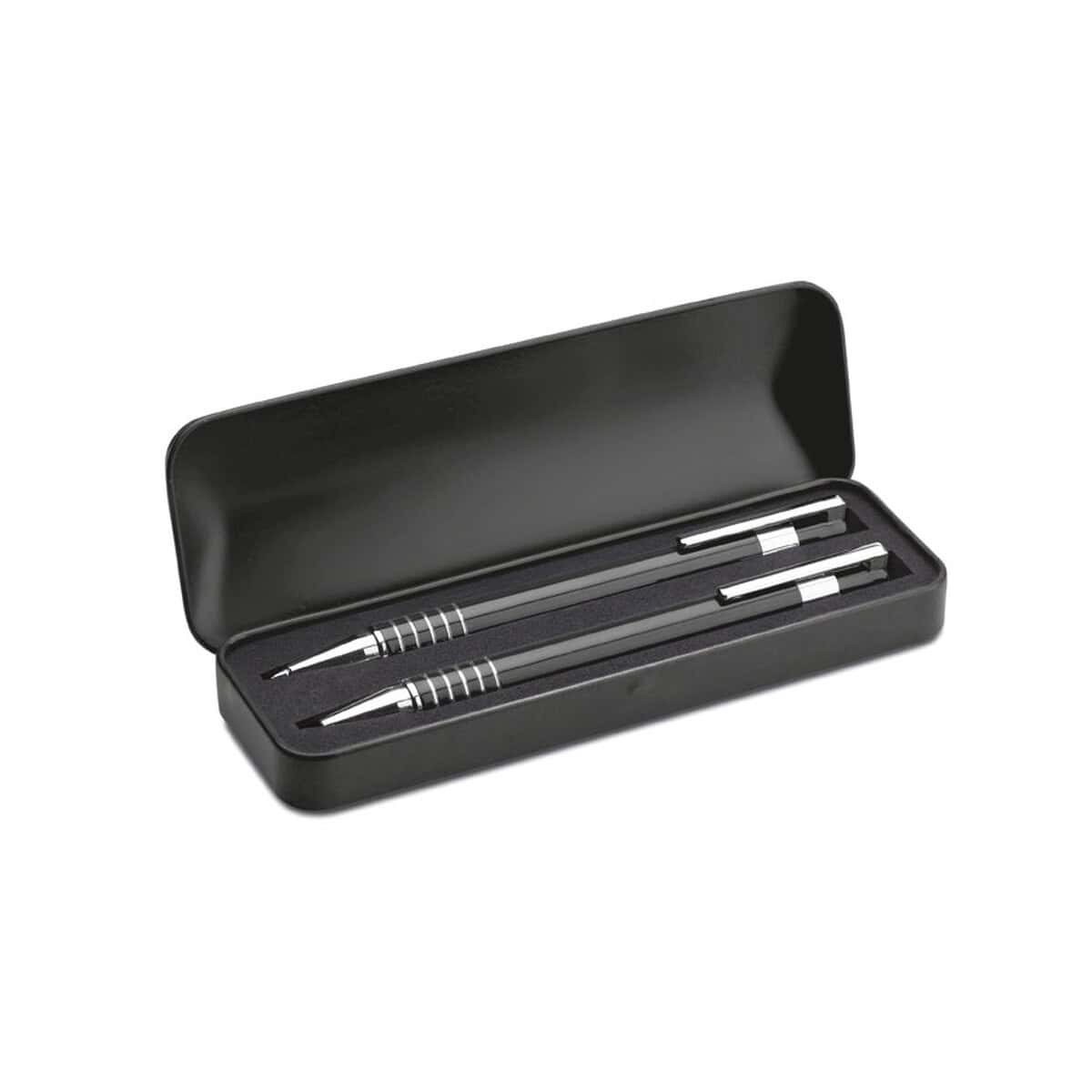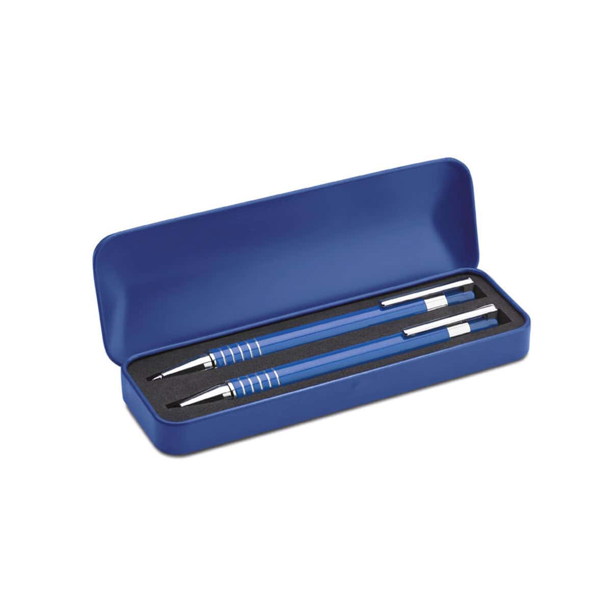 Zestaw piśmienny w pudełku ALUCOLOR to elegancja i funkcjonalność zamknięte w wytrzymałej, aluminiowej formie – propozycja, która zyska uznanie każdego, kto ceni wysoką jakość i styl 🙂. W skład kompletu wchodzi przyciskany długopis z niebieskim wkładem oraz mechaniczny ołówek, oba umieszczone w dopasowanym kolorystycznie, metalowym etui. Dzięki wymiarom 16 × 5,3 × 2 cm i wadze zaledwie 93 g zestaw mieści się w kieszeni teczki czy torby, stając się podręcznym wsparciem w biurze, na uczelni i podczas konferencji.