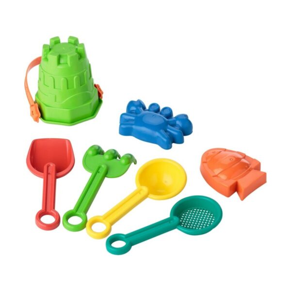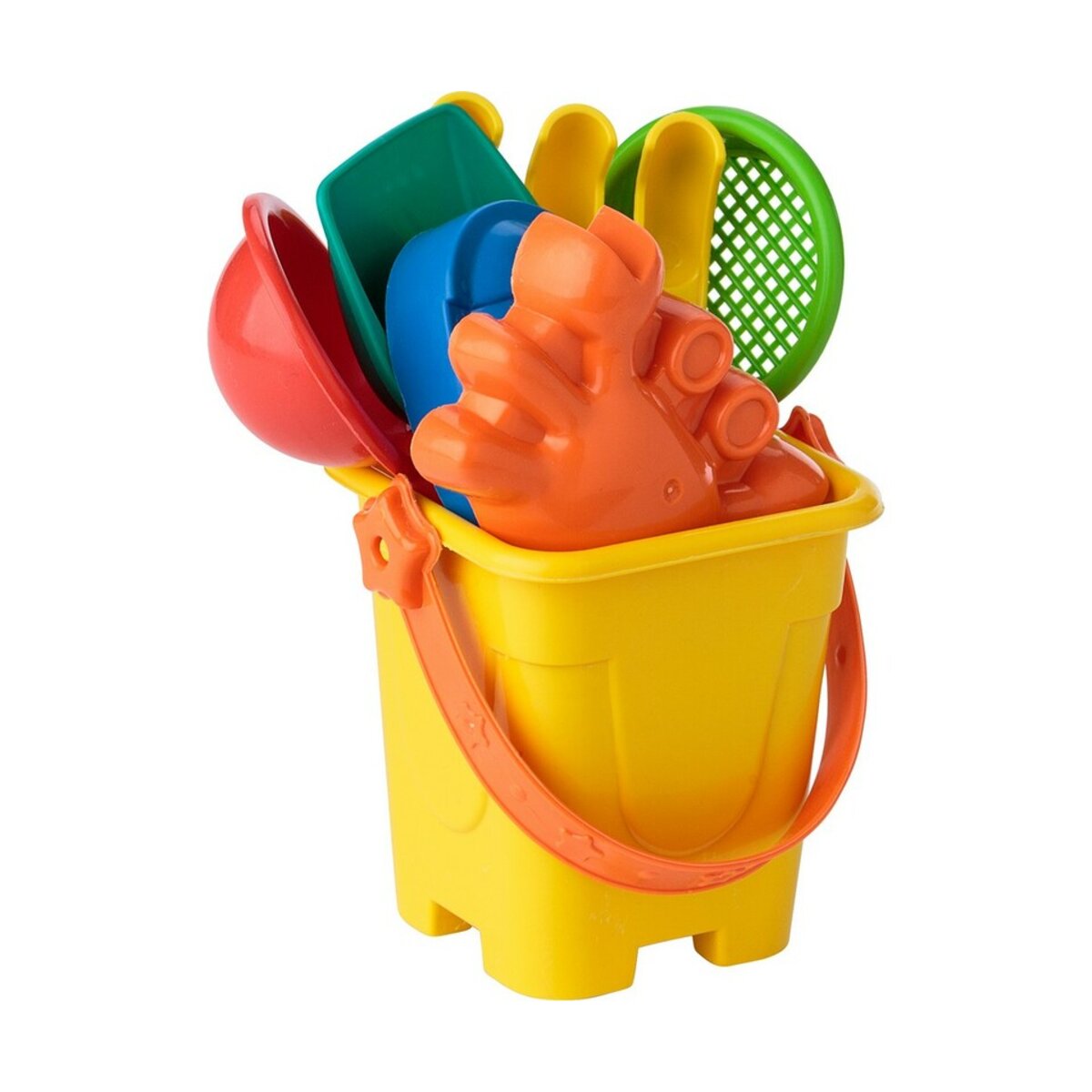 Przedstawiamy idealny towarzysz wakacyjnych przygód dla najmłodszych – Zestaw plażowy, wiaderko. To niezbędny przedmiot, który sprawi, że każda wyprawa na plażę stanie się dla dziecka ekscytującym odkrywaniem świata. W skład zestawu wchodzą łopatka, grabki, sitko, szufelka oraz dwie foremki, które pozwolą na kreatywne zabawy w piasku.