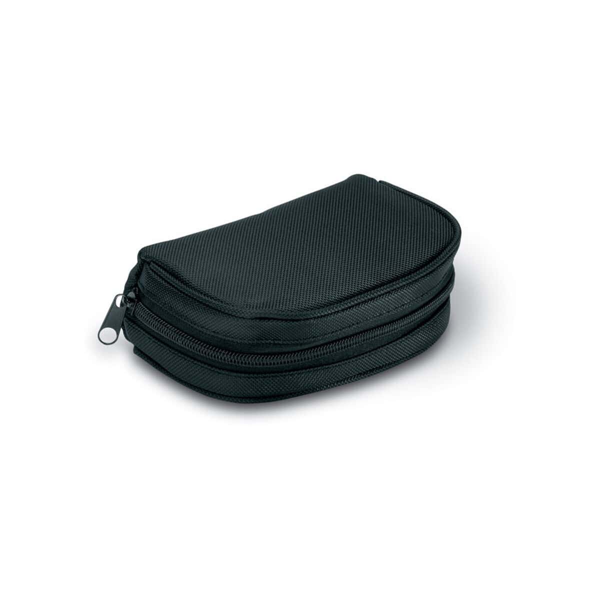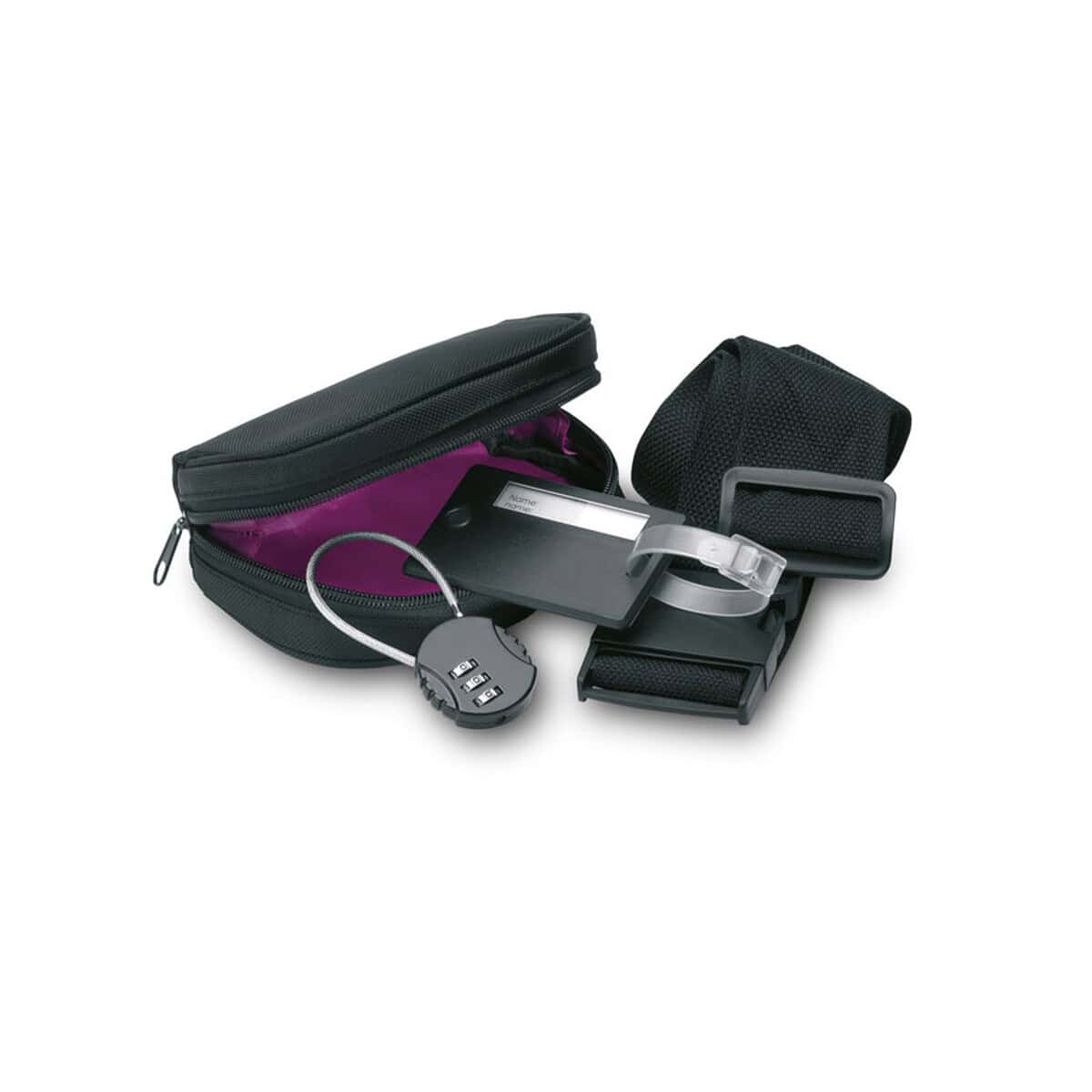 Wymiary etui to jedynie 15,5 × 10 × 5 cm, a waga całego kompletu wynosi zaledwie 0,184 kg, dzięki czemu zmieścisz go nawet w kieszeni plecaka. Klasyczna czarna kolorystyka harmonijnie komponuje się z każdym stylem walizki, a zarazem idealnie eksponuje firmowe logo. Dodatkowym atutem jest wytrzymały materiał odporny na przetarcia i warunki atmosferyczne, co czyni produkt doskonałym towarzyszem wielu sezonów podróży.