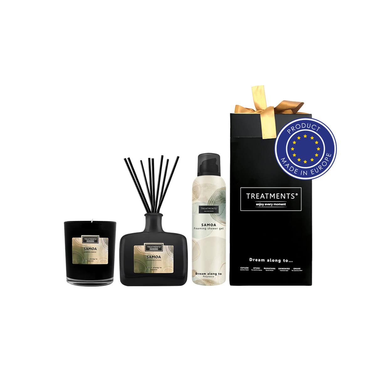 Zestaw prezentowy Home & Body DeLuxe TREATMENTS to wyrafinowany, a zarazem praktyczny gadżet stworzony z myślą o firmach, które chcą zachwycić swoich kontrahentów aromatycznym doświadczeniem wellness. W eleganckim, papierowym kartoniku o wymiarach 14 x 14 x 45 cm znajdziesz świeczkę zapachową 380 g, patyczki zapachowe 200 ml oraz pieniący się żel pod prysznic 200 ml. Kompozycje aromatów Omani, Zhejinag i Samoa zamienią każdą łazienkę w prywatne SPA, a wielokolorowa paleta barw zestawu ożywi przestrzeń. 🙂
