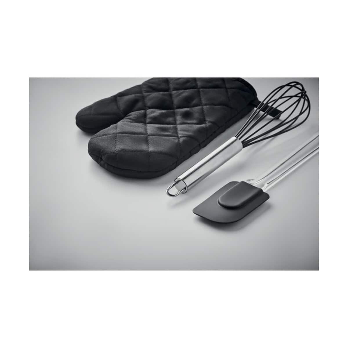 Zestaw przyborów do pieczenia DATEKI to znakomity sposób, by dodać smakowitego charakteru każdej kampanii promocyjnej 😊. W eleganckim zestawie znajdują się: polibawełniana rękawica kuchenną (95 % poliester, 5 % bawełna), solidna trzepaczka oraz elastyczna silikonowa szpatułka – komplet gotowy, by towarzyszyć zarówno domowym mistrzom wypieków, jak i profesjonalnym cukiernikom. Dzięki kompaktowym wymiarom 25 × 15 cm i niewielkiej wadze 0,180 kg produkt łatwo zapakować do paczki PR lub wręczyć podczas targów branżowych.