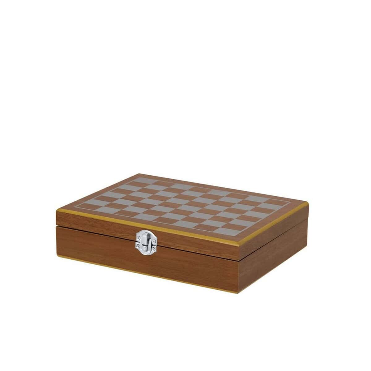 Zestaw upominkowy, piersiówka 175 ml, kieliszek 30 ml, szachy, karty oraz kości do gry to wyjątkowy gadżet, który łączy w sobie elegancję, funkcjonalność i nutę rozrywki 🙂. Wykonany z naturalnego drewna w szlachetnym, beżowym odcieniu, już na pierwszy rzut oka przyciąga wzrok subtelnym designem, a jednocześnie oferuje pełnię możliwości personalizacji poprzez wyraźny nadruk lub grawer. Solidna skrzynka o wymiarach 24 x 6 x 18,3 cm i wadze 840 g skrywa w swoim wnętrzu elegancką piersiówkę o pojemności 175 ml, dopasowany kieliszek 30 ml, praktyczny nalewak oraz komplet klasycznych gier – szachy, talię kart i kości. Wszystkie elementy stabilnie spoczywają w precyzyjnie wyciętych przegrodach, dzięki czemu całość prezentuje się wprost doskonałe.