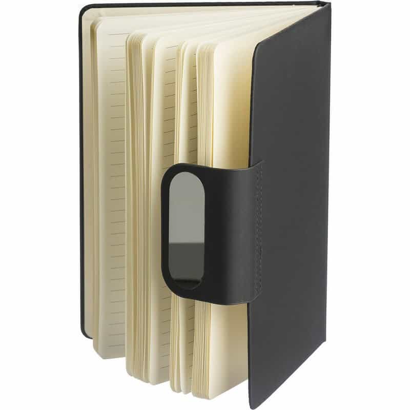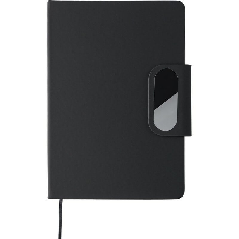 Metalowy długopis z niebieskim wkładem pisze gładko i precyzyjnie, a 80-stronicowy notatnik z papieru 70 g/m² ułatwia organizację myśli – magnetyczne zamknięcie, tasiemka zakładkowa oraz grawerowana plakietka dodają mu prestiżu. Wszystkie elementy posiadają ikonę recyklingu, a wykorzystanie RPET świadczy o odpowiedzialnym podejściu do środowiska. Całość waży jedynie 1340 g, więc bez trudu zmieści się w torbie menedżera czy plecaku studenta.