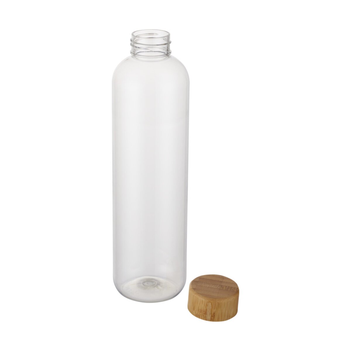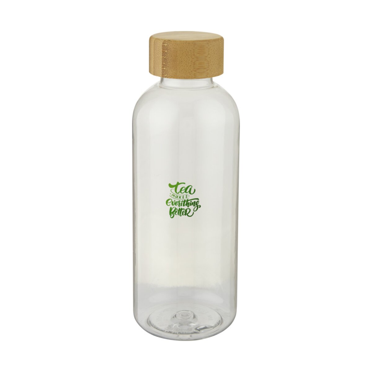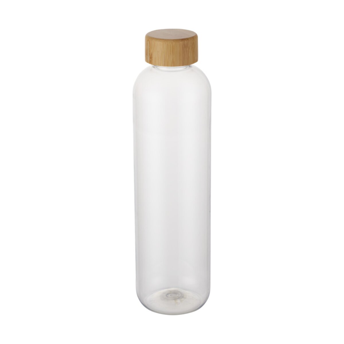 Butelka na wodę wielokrotnego użytku wykonana z tworzyw sztucznych pochodzących, ze stylową bambusową pokrywką. Jednościenna butelka niezawierająca BPA, przetestowana i zatwierdzona zgodnie z niemieckimi przepisami dotyczącymi bezpieczeństwa żywności (LFGB). Przetestowana i zatwierdzona pod kątem zawartości ftalanów zgodnie z przepisami REACH. Bambus pochodzi ze zrównoważonych, ekologicznie i społecznie odpowiedzialnych źródeł. Pojemność 950 ml. Zalecane mycie ręczne. Zapakowana w pudełko upominkowe wykonane z kartonu z recyklingu.
