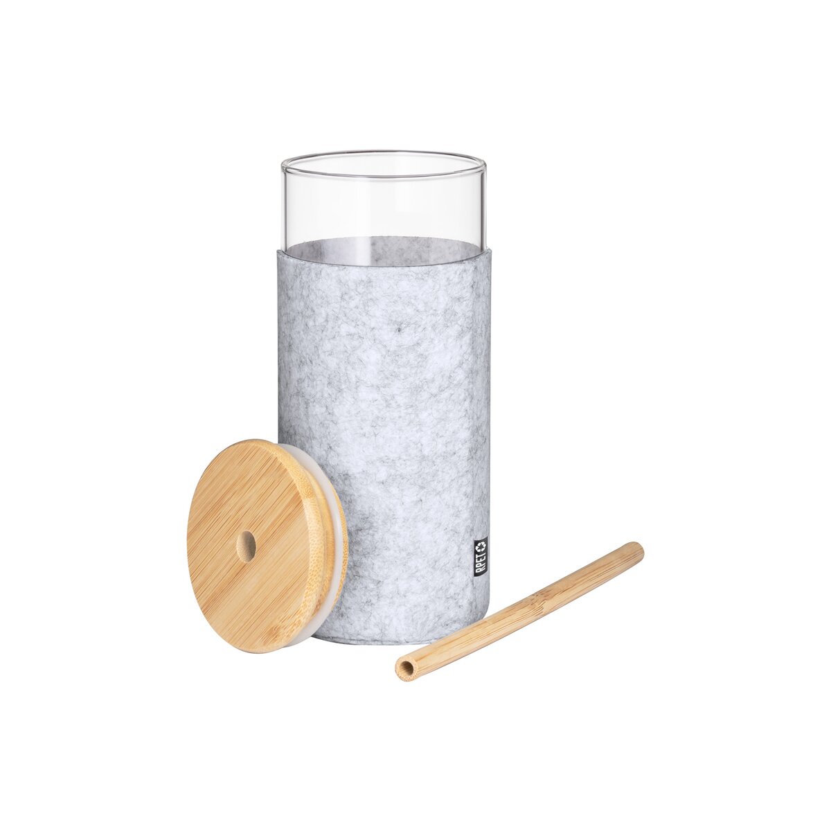 Przedstawiamy Zilber szklany kubek ze słomką – wyjątkowe połączenie stylu, ekologii i funkcjonalności. Ten elegancki kubek wykonany z szkła borokrzemowego gwarantuje nie tylko estetyczny wygląd, ale także wysoką odporność na zmiany temperatur. Kubek jest pokryty ciemnoszarym filcem RPET, który jest przyjazny dla środowiska, pochodzący z recyklingu butelek PET. Dopełnieniem całości jest bambusowa pokrywka oraz słomka do picia, co czyni ten produkt nie tylko praktycznym, ale też przyjaznym naturze.