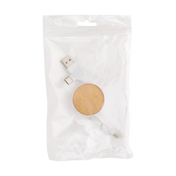 Dostępny w kolorach białym i czarnym, z łatwością wpasuje się w każde otoczenie, zarówno biurowe, jak i domowe. Materiały takie jak ABS, TPE, bambus, oraz metal zapewniają trwałość i niezawodność produktu. Dzięki kompaktowym wymiarom (długość 15,5 cm) i niewielkiej wadze (32 g), zwijany kabel do ładowania jest również idealny do zabrania w podróż, czy na wyjazdy służbowe.